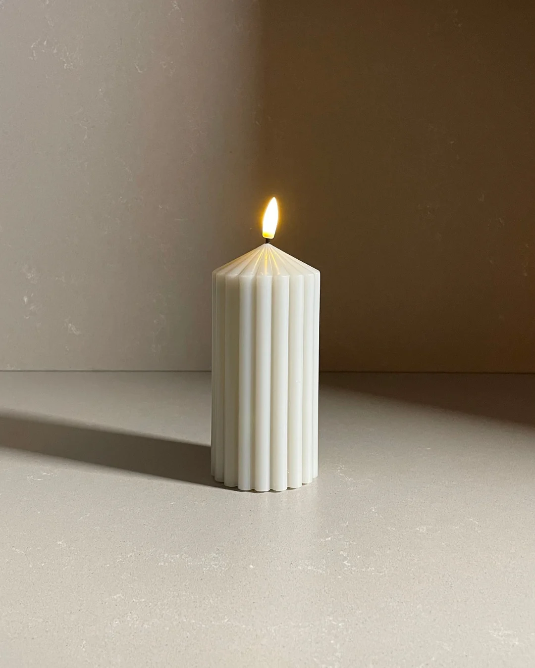 Deze prachtige LED kaars striped is de perfecte combinatie van sfeer en veiligheid. Gemaakt van echte wax en voorzien van een natuurgetrouw flikkerende vlam, brengen ze warmte en rust in elke ruimte. Geen vuur, geen rook, geen risico – wél de uitstraling van een echte kaars. Dankzij de bijgeleverde afstandsbediening bepaal je zelf wanneer en hoe lang de kaars aan staat.